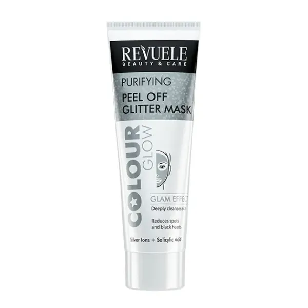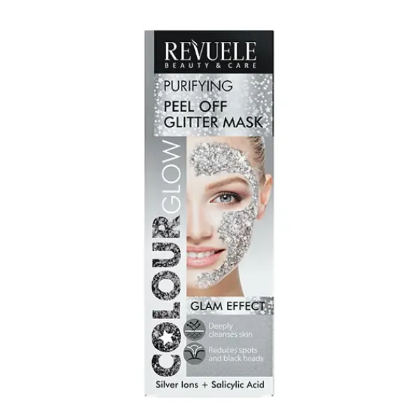 REVUELE COLOR GLOW SILVER PURIFYING PEEL OFF GLITTER MASK.
