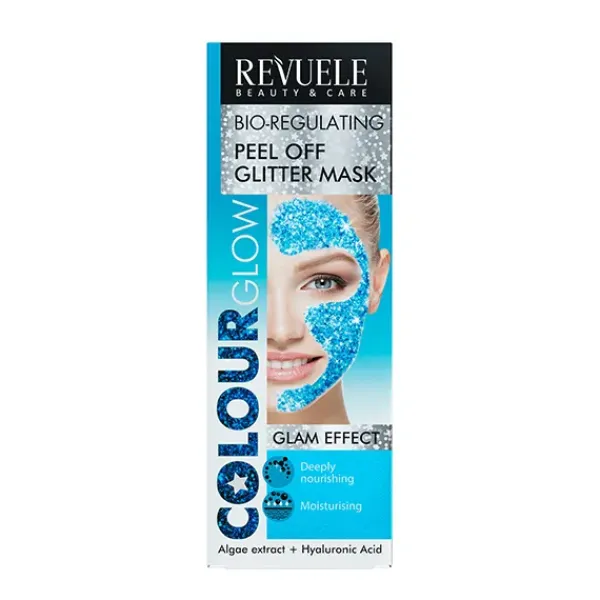 REVUELE COLOR GLOW BLUE MASCARILLA BIO-REGULADORA PEEL OFF GLITTER.