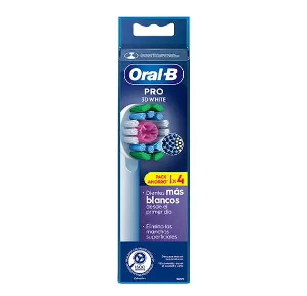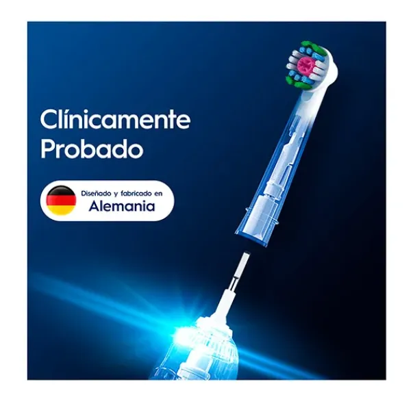 El cabezal Oral-B Pro 3D White cuenta con una exclusiva copa pulidora que blanquea los dientes, eliminando manchas superficiales desde el primer día.
