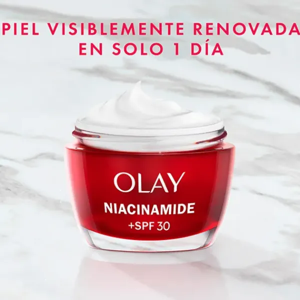 CREMA DÍA: La crema Niacinamida SPF30 de Olay cuenta con la inigualable tecnología SolarSheer, que ofrece una efectiva protección solar SPF30 de amplio espectro frente los rayos UVA y UVB. Ultraligera para que puedas disfrutar por fin de una crema hidratante con protección solar sin textura grasa. Su fórmula también está enriquecida con la mayor concentración de Niacinamida pura al 99% de Olay, capaz de penetrar hasta 10 capas de profundidad para ayudar a activar la renovación celular superficial. Se ha demostrado que la Vitamina E actúa como un antioxidante que ayuda a combatir los efectos perjudiciales de los radicales libres y a mantener la piel con un aspecto joven. Una combinación perfecta que garantiza la hidratación durante todo el día y unos resultados visibles: Tras 1 día, la piel está más suave y revitalizada y, tras 14 días, la firmeza y la elasticidad mejoran visiblemente. Prueba el poder hidratante de la Niacinamida 24 + Vitamina E de Olay.