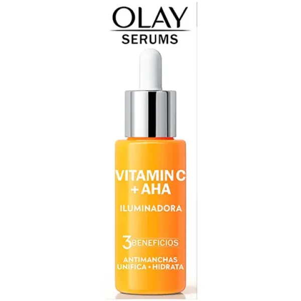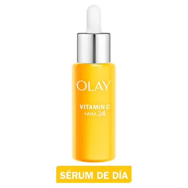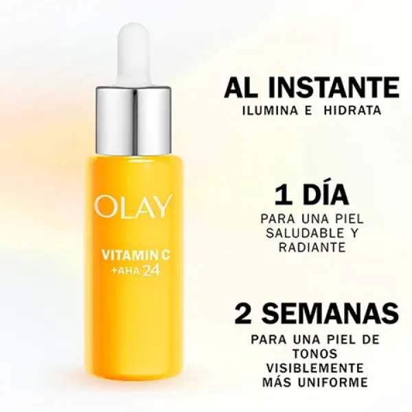 El sérum facial Olay Regenerist Vitamin C + AHA 24 proporciona una piel más luminosa en solo 1 día y un tono y textura visiblemente más uniformes en 14 días.