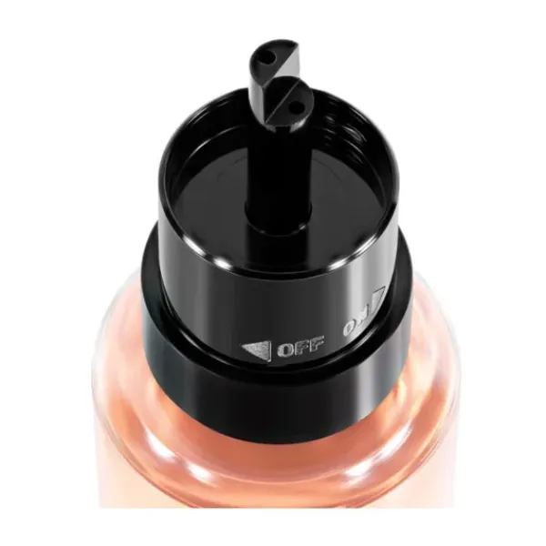 De su frasco rectangular con tapón ovalado destaca especialmente la alianza que une ambas partes como símbolo de eternidad. Por otra parte, también es impresionante el contraste establecido entre sus colores principales, rosa nude y negro, los cuales representan emoción y fuerza respectivamente.