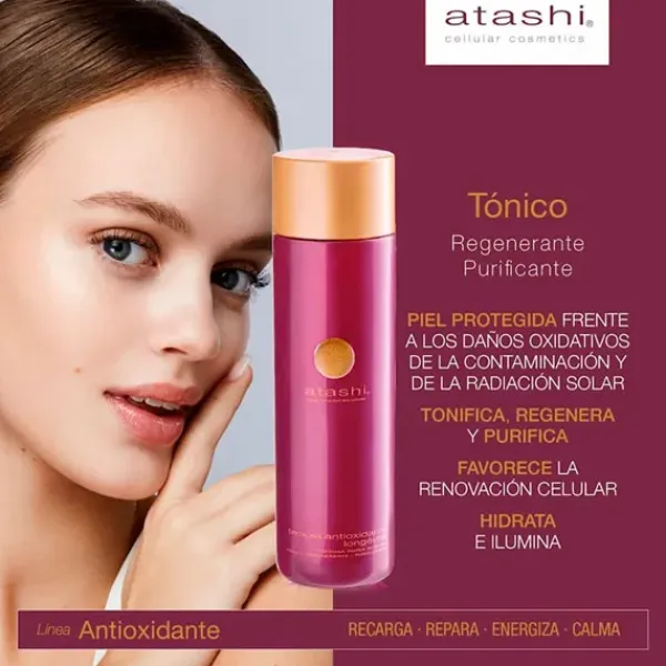 El tónico regenerante purificante ha sido desarrollado con aguas frutales BIO de Uva, Arándano rojo y Granada que frena el envejecimiento y restaura el daño producido por los efectos adversos de la radiación solar y la contaminación.