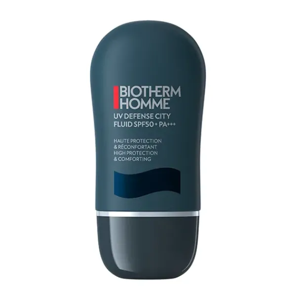 Biotherm Homme UV Defense CITY+ con Textura Ultra Ligera. El protector solar facial para hombres UV Defense CITY+ de Biotherm ofrece una alta protección contra los rayos UV y la contaminación urbana.