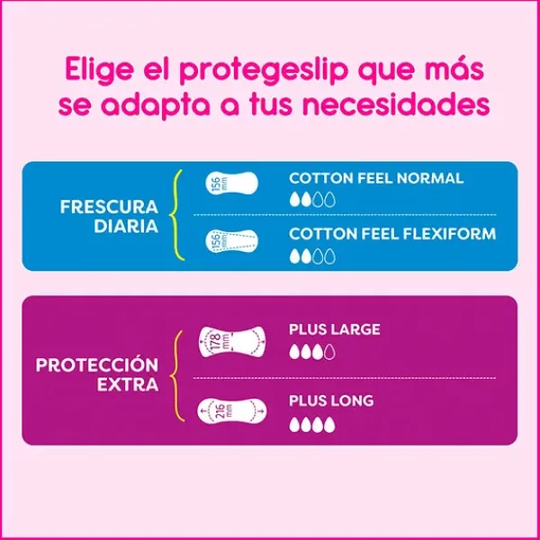 Son más anchos y más largos que los protegeslips Carefree Cotton para ofrecer una mayor protección.