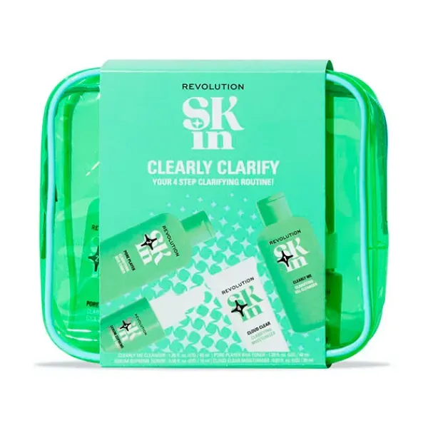 Tu rutina clarificante en 4 pasos con el neceser de rutina facial Clearly Clarify de Revolution Skin.
