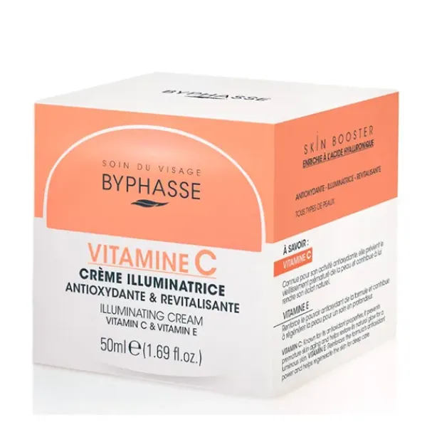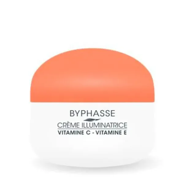 La crema iluminadora Byphasse con vitamina C, enriquecida con vitamina E y ácido hialurónico, ayuda a prevenir el envejecimiento prematuro de la piel gracias a su alto poder antioxidante.