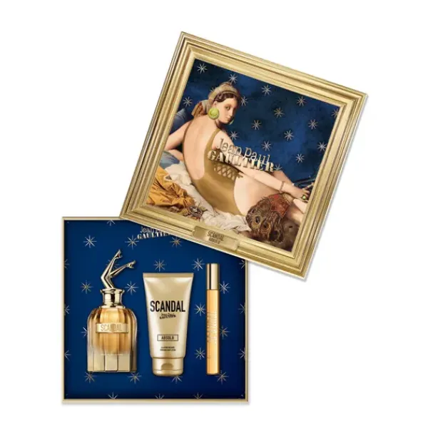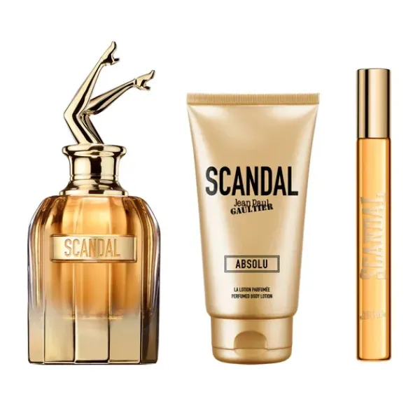 Este set de regalo contiene un Scandal Absolu Parfum Concentré 80 ml, una Loción Corporal 75 ml y un formato de viaje 10 ml.