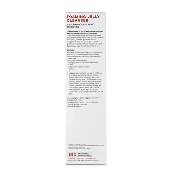 El limpiador perfecto para la vida moderna, Foaming Jelly Cleanser está formulado con un 85% de ingredientes de origen natural y limpia en profundidad tu piel y tus poros.