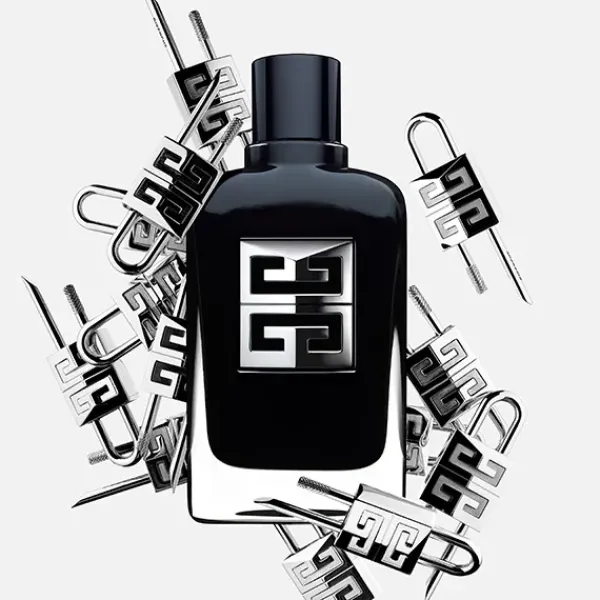 El diseño inspirado en la alta costura del Eau de Parfum reviste el icónico frasco de Givenchy Gentleman con pura elegancia. Como un escudo, un monograma 4G reinterpretado en metal plateado brillante adorna el acabado lacado en negro. El frasco está hecha con un 15 % de vidrio reciclado.