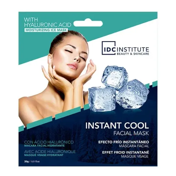 Mascarilla facial de papel impregnado con ácido hialurónico y efecto frío.