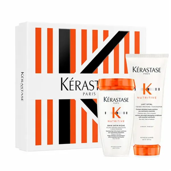 Cofre Edición limitada NUTRITIVE de Kérastase, este cofre combina la esencia del cuidado capilar para ofrecerte una rutina completa que transformará tu cabello seco en una melena revitalizada.