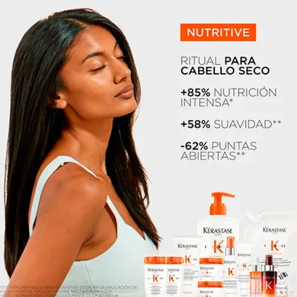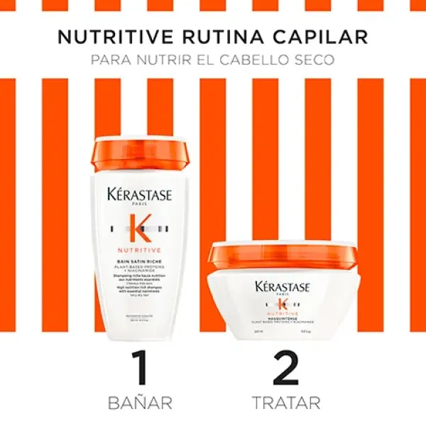 La mascarilla Masquintense de Kérastase es una mascarilla capilar ultraconcentrada y profundamente nutritiva para el cabello muy seco, de medio a grueso. Contiene polímeros antisequedad para mantener la ligereza y el movimiento del cabello, y nutrientes esenciales que nutren y refuerzan el cabello.