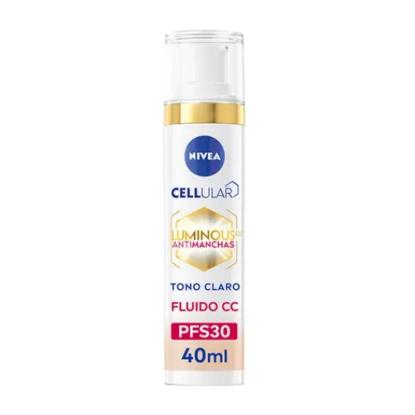 NIVEA LUMINOUS 630 Antimanchas Fluido Facial con Color FP30 perfecciona la piel del rostro gracias a su triple acción: (1) CUBRE: Los pigmentos microencapsulados, que se adaptan al tono de la piel, proporcionan una cobertura de aspecto natural e igualan al instante las manchas oscuras y las imperfecciones. (2) REDUCE: La fórmula con LUMINOUS630® reduce visiblemente las manchas en 2 semanas y unifica el tono en un +40% en 8 semanas.* (3) PROTEGE: La fórmula con SPF30 protege del sol y previene la aparición de nuevas manchas. La fórmula enriquecida con Ácido Hialurónico** activador celular también hidrata en profundidad y rellena la piel. Para una piel uniforme y luminosa, de aspecto radiante. Resultados visibles en 2 semanas. autoevaluación, estudio de 12 semanas con 51 mujeres, 2023 *testas en células de la piel