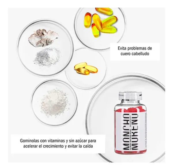 Complemento alimenticio sabor a frambuesa en formato gominola. Destaca por su contenido en Colágeno (150 mg), Vitamina E (50mg), D-Biotina (15g), Vitamina D3 (1,5g), y Zinc (4mg).