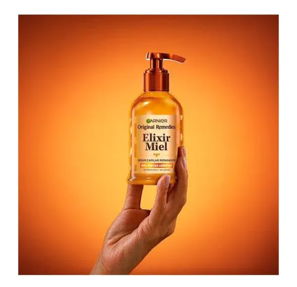 Descubre el revolucionario Elixir de Miel Sérum Capilar Reparador de Original Remedies, formulado específicamente para reparar cabellos dañados. Este elixir de miel sin aclarado de Garnier utiliza el poder reparador de la miel para ofrecer resultados inmediatos y visibles: reducción del 94% en las puntas abiertas, un cabello 6 veces más suave y 4 veces menos rotura. Además, combate hasta 1 año de daños y brinda una protección de calor de hasta 230º.