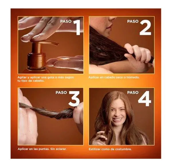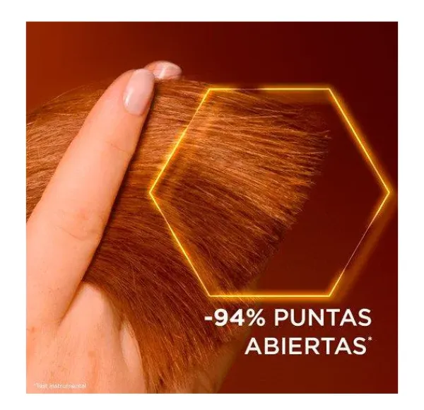 Este cuidado capilar con tecnología súper sérum no deja residuos en el cabello, gracias a su textura que no deja sensación pegajosa ni grasa en el cabello. Su fragancia combina una nota de ámbar fresca y afrutada, con un ligero final de miel cremosa y fresca.