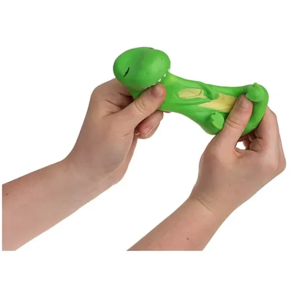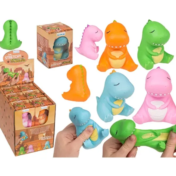 Dinosaurio elástico, 7 5 cm, de TPR y arena, 4 colores surtidos.
