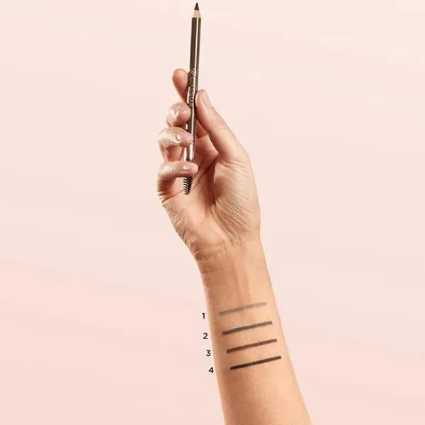 Un lápiz que permite dibujar el contorno de las cejas con unos pocos trazos rápidos y precisos, corrigiendo su forma de manera natural, para conseguir un resultado profesional duradero (hasta 12 horas) y resistente al agua.