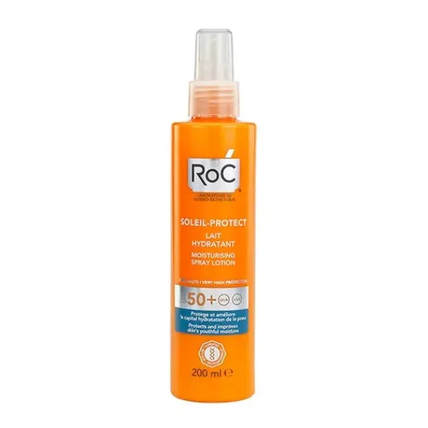 RoC Soleil-Protect Leche Hidratante SPF50+ 200 ml de textura no grasa y aterciopelada es una protección solar muy alta SPF50+ para rostro y cuerpo, para toda la familia.