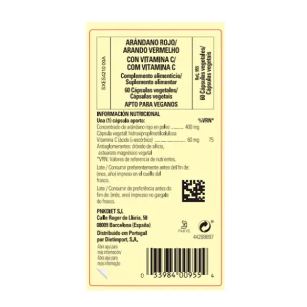 Solgar Arándano Rojo 60 Cápsulas Vegetales Vitamina C es un complemento alimenticio.