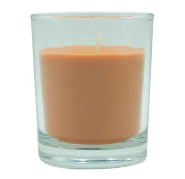 Vela de cera vegetal con fragancia a Canela. Presentada en vaso de cristal 100% reciclable.