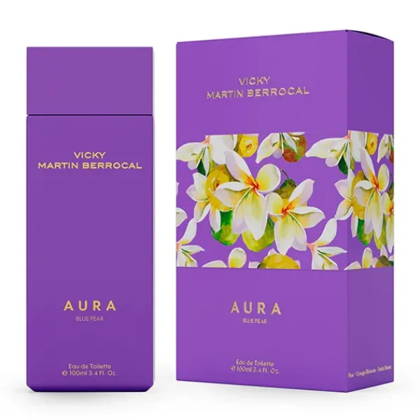 Aura es una fragancia brillante e irresistible. Notas de pera y flor de naranjo se unen a una chispeante pimienta negra y lirio de los balles.