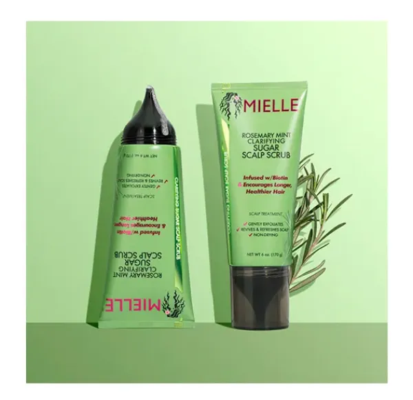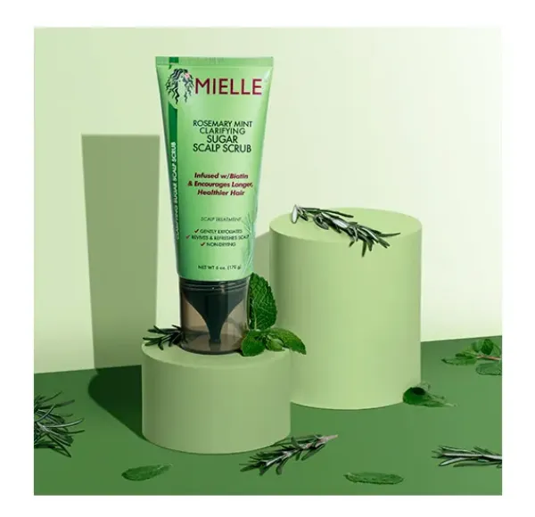 Rosemary Mint Clariifying Sugar Scalp Scrub utiliza gránulos de azúcar suaves para exfoliar y eliminar las impurezas. Este tratamiento también elimina la acumulación de grasa y productos para refrescar y revitalizar el cuero cabelludo.