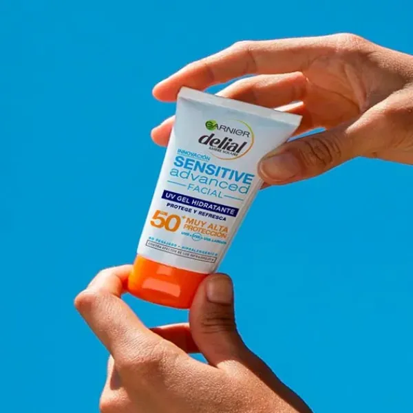 El UV Gel Hidratante Sensitive Advanced es un protector solar facial hidratante, especial rostro y escote, con una alta protección solar contra los rayos UVB y UVA incluso largos.