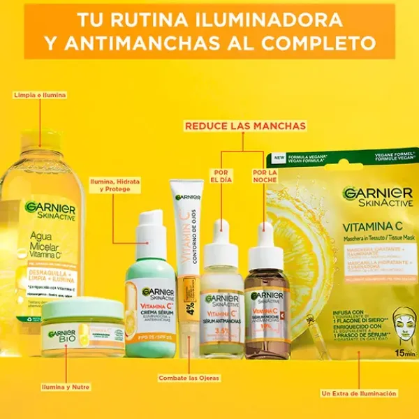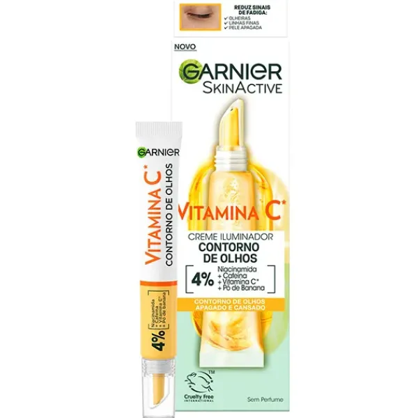 La Crema Iluminadora para el Contorno de Ojos con Niacinamida + Vitamina C + Cafeína + Polvo de banana reduce visiblemente los signos de fatiga e ilumina la mirada.