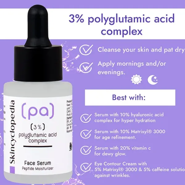 El ácido poliglutámico es un potente péptido que contiene hasta 5 veces más humedad que el ácido hialurónico para conseguir una hidratación inigualable.