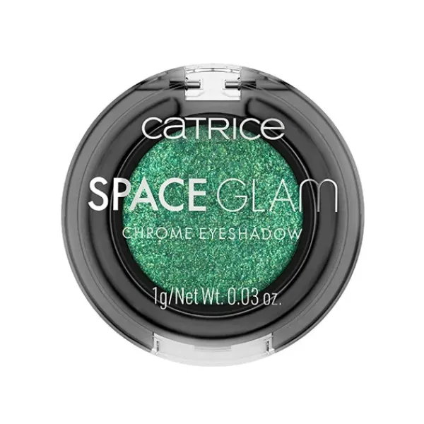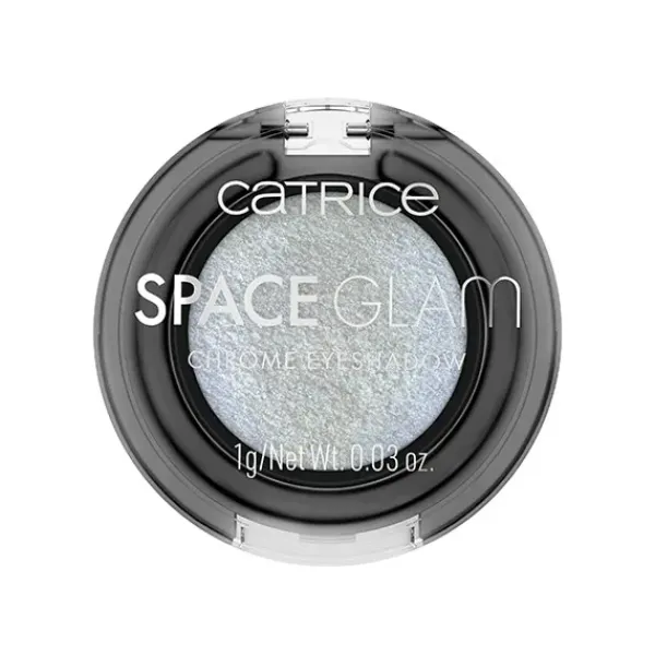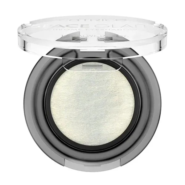 ¡Con la sombra de ojos Space Glam Chrome de Catrice creas maquillajes del espacio exterior! La sombra de ojos mono tiene una gran pigmentación y, dependiendo del ángulo de la luz, muestra sus tonalidades blancas con un sutil shimmer verde y dorado.