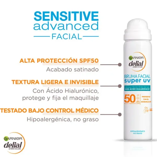 Protege las pieles más sensibles del sol con la bruma facial hidratante de Delial.