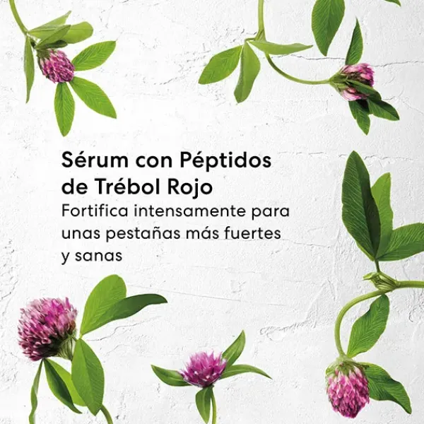 Su fórmula con tratamiento, a base de péptidos de trébol rojo, alarga progresivamente las pestañas y las fortalece para frenar su caída.