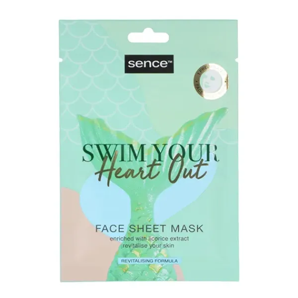 Mascarilla facial Swim Your Heart Out, enriquecida con extracto de regaliz revitaliza tu piel.