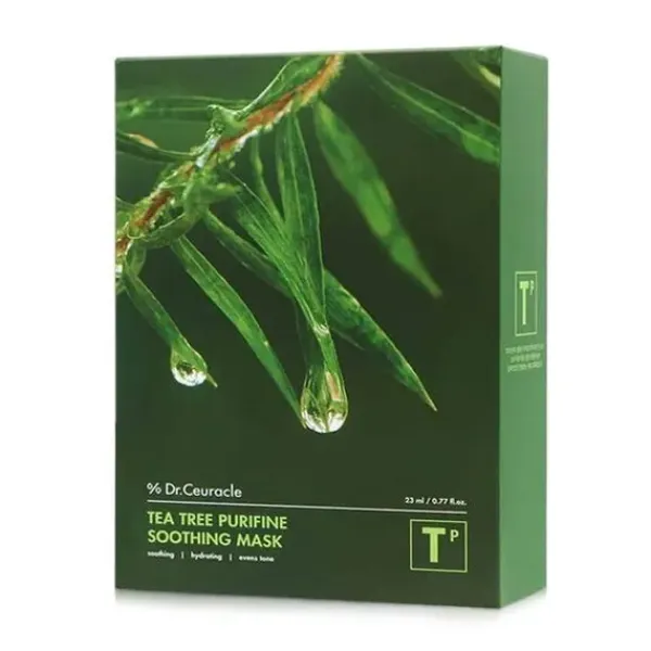 Mascarilla facial tipo velo a base de extracto de árbol de té, que calma las pieles acneicas combatiendo sus brotes.