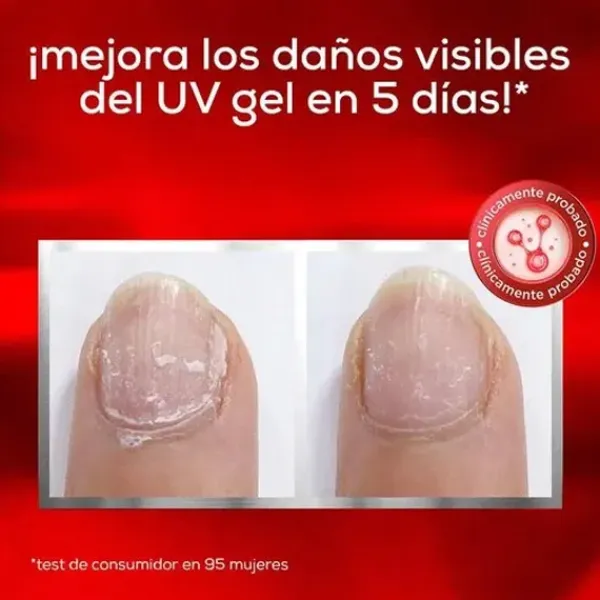 Esta fórmula clínicamente probada sella instantáneamente la superficie de la uña descamada, protege contra la rotura y engrosa la apariencia de las uñas delgadas.
