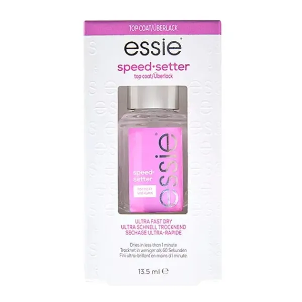 Speed Setter Top Coat de Essie está diseñado para secar rápidamente tu esmalte de uñas, ¡En menos de 1 minuto!