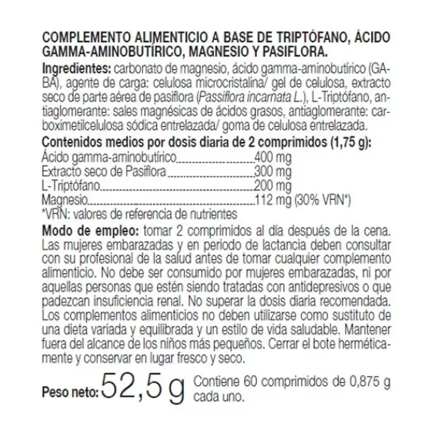 Es un complemento alimenticio que nos aporta relajación y nos ayuda a conciliar el sueño. Contribuyendo a disminuir el cansancio y la fatiga.
