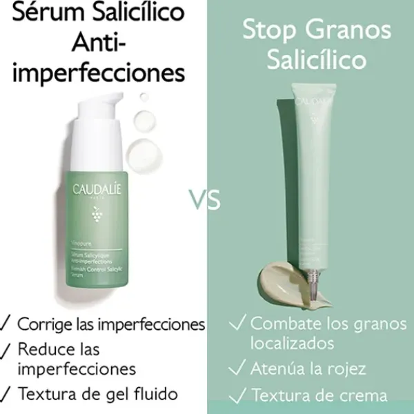 El Stop Granos Salicílico Vinopure reduce visiblemente los granos localizados en 1h*.