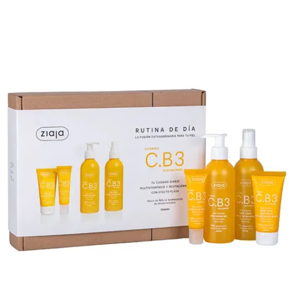 Este pack incluye cuatro productos de la innovadora línea Vitamina C.B3 Niacinamida, ofreciendo un ritual energizante para el cuidado diario de la piel en solo 3 minutos. ¡Perfecto para regalar!