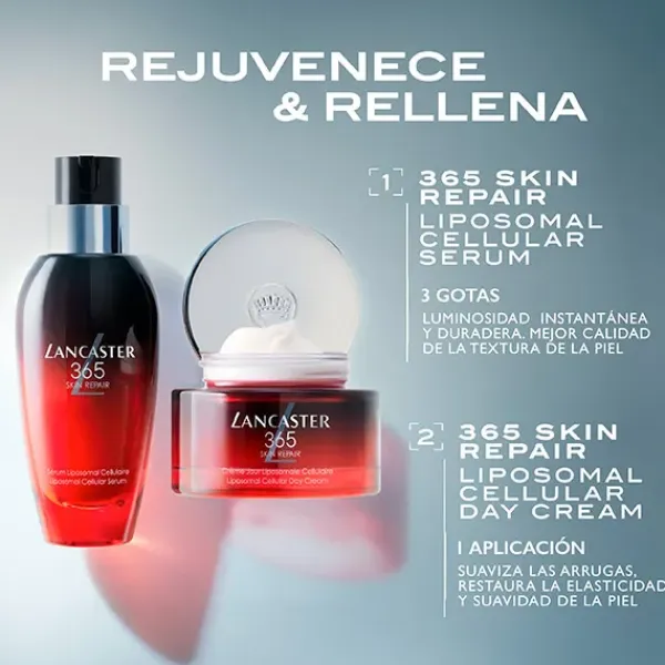 Lancaster 365 Skin Repair Liposomal Cellular Serum que restablece la piel del daño producido por la radiación solar y transforma la textura de la piel para dejarla visiblemente más luminosa y radiante.