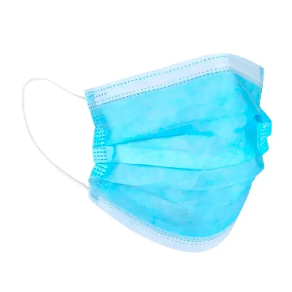 Máscara de triple capa con filtro bacteriológico de retención de partículas en suspensión, con un acabo que permite una conexión firme y un ajuste cómodo, suave y sellado, embalado en paquete de 50 unidades.