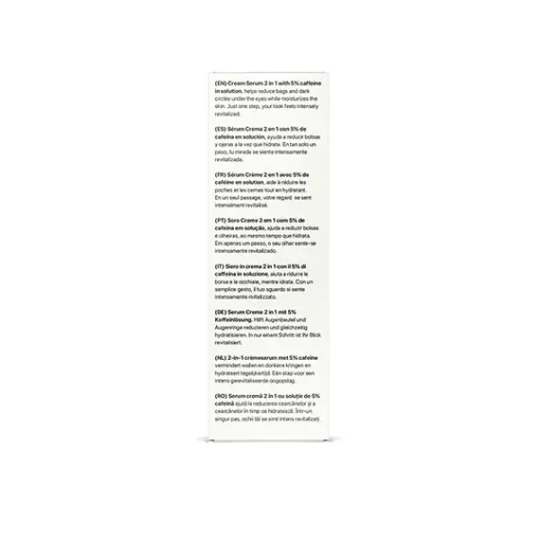 Sérum Crema 2 en 1 laCabine con 5% de cafeína en solución, ayuda a reducir bolsas y ojeras a la vez que hidrata. En tan solo un paso, tu mirada se siente intensamente revitalizada.