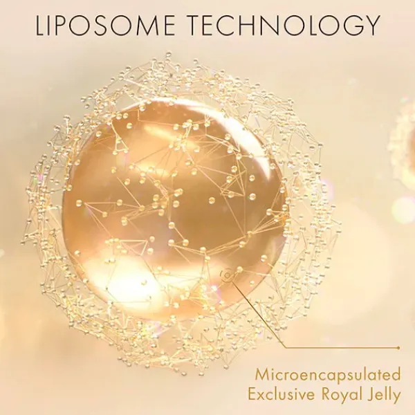 El poder de la Jalea Real exclusiva de Guerlain está optimizado con tecnología liposomal. Estas esferas invisibles encapsulan y concentran la jalea real en la Loción Fortalecedora, y su afinidad natural con la epidermis ayuda a que se extienda más fácilmente sobre la piel.