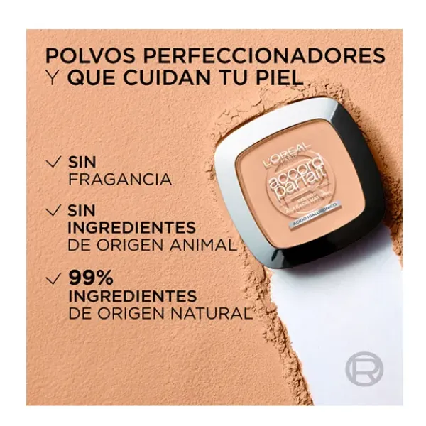 Polvos Compactos Accord PerfectL’Oréal París revoluciona el mundo de los polvos de maquillaje con su gama Accord Perfect. El polvo se funde completamente con tu textura y color de piel, dejando un acabado 100% natural gracias a su cobertura variable. Unifica y cubre imperfecciones sin dar un efecto exagerado. Se contiene en un envase práctico relleno de polvos ultra finos, suaves y ligeros e incluye una esponja aplicadora y un espejo.Lista y preparada en cualquier sitio con Accord Perfect.