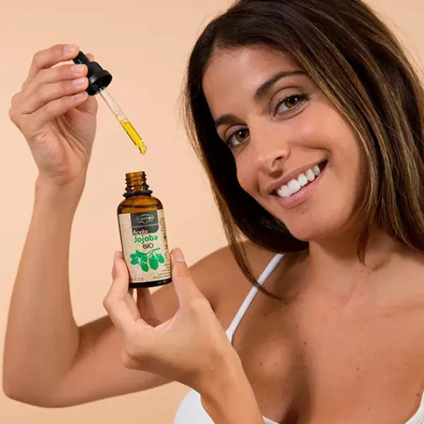 El aceite de jojoba penetra y disuelve dichos depósitos, regula la secreción sebácea excesiva en el cuero cabelludo y estimula su crecimiento, lo que te hará tener un cabello más abundante y sano.