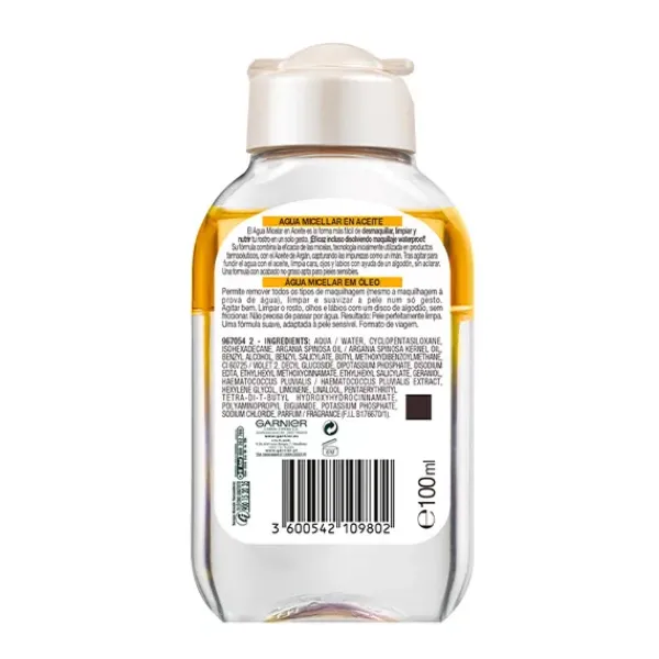 El Agua Micelar en Aceite de Garnier es un limpiador facial que nutre, desmaquilla y limpia ojos, labios y rostro en un solo gesto.