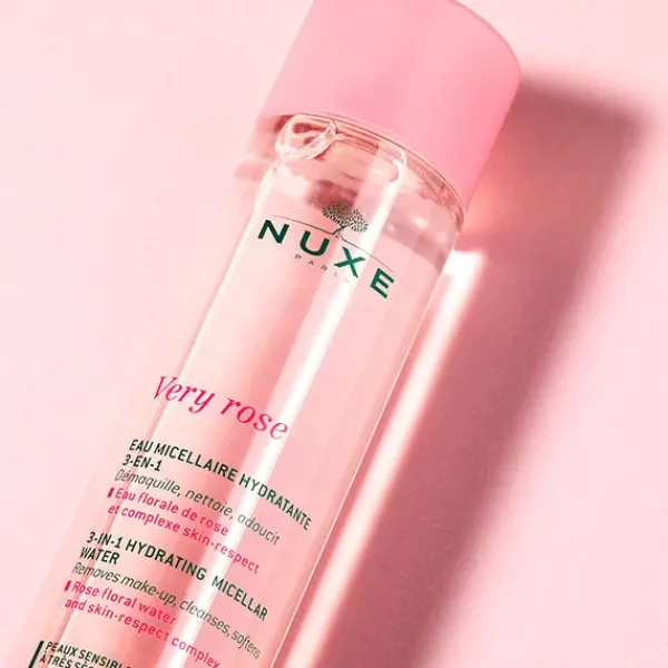 Esta agua micelar con Agua Floral de Rosa desmaquilla y limpia la piel del rostro y los ojos, eliminando el maquillaje y las impurezas.