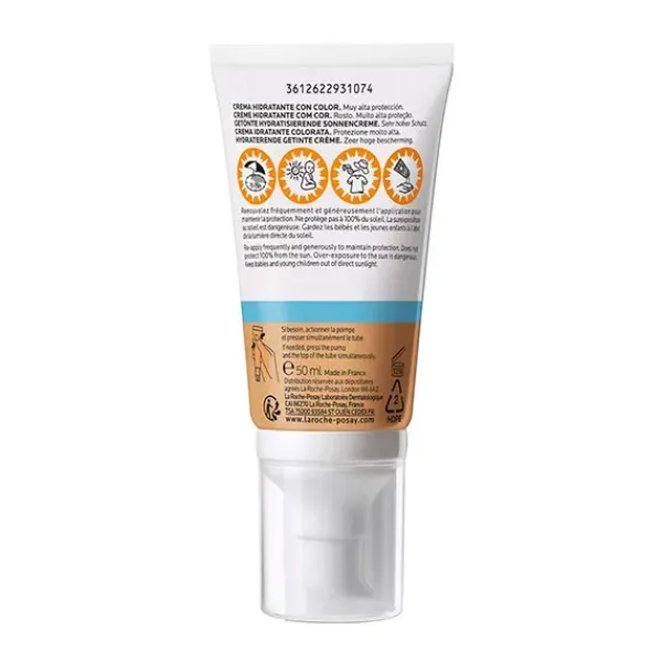 Anthelios UVMUNE 400 Crema Hidratante spf50+ Con Color es un protector solar de rostro de muy alta protección de amplio espectro, incluso contra los rayos UV más insidiosos*(ULTRA-LONG UVA**,UVA/UVB/IR-A/polución) ideal para todo tipo de piel, especialmente la piel sensible y reactiva, para uso diario, excelente base de maquillaje con acabado natural.